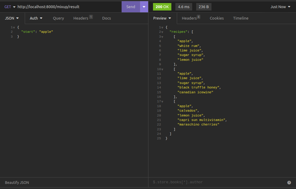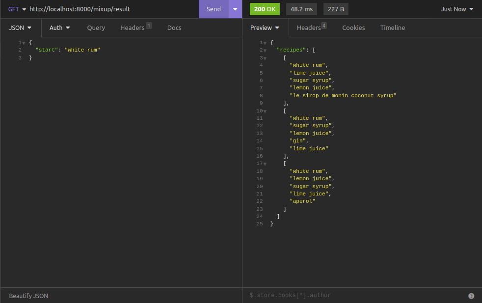 FastAPIframework which were solved with documentation. - We faced up with the problem of distribution ingredients into non-alcoholic and alcoholic. So we go through whole ingredients and use OpenAI model to detect alcoholic ones.