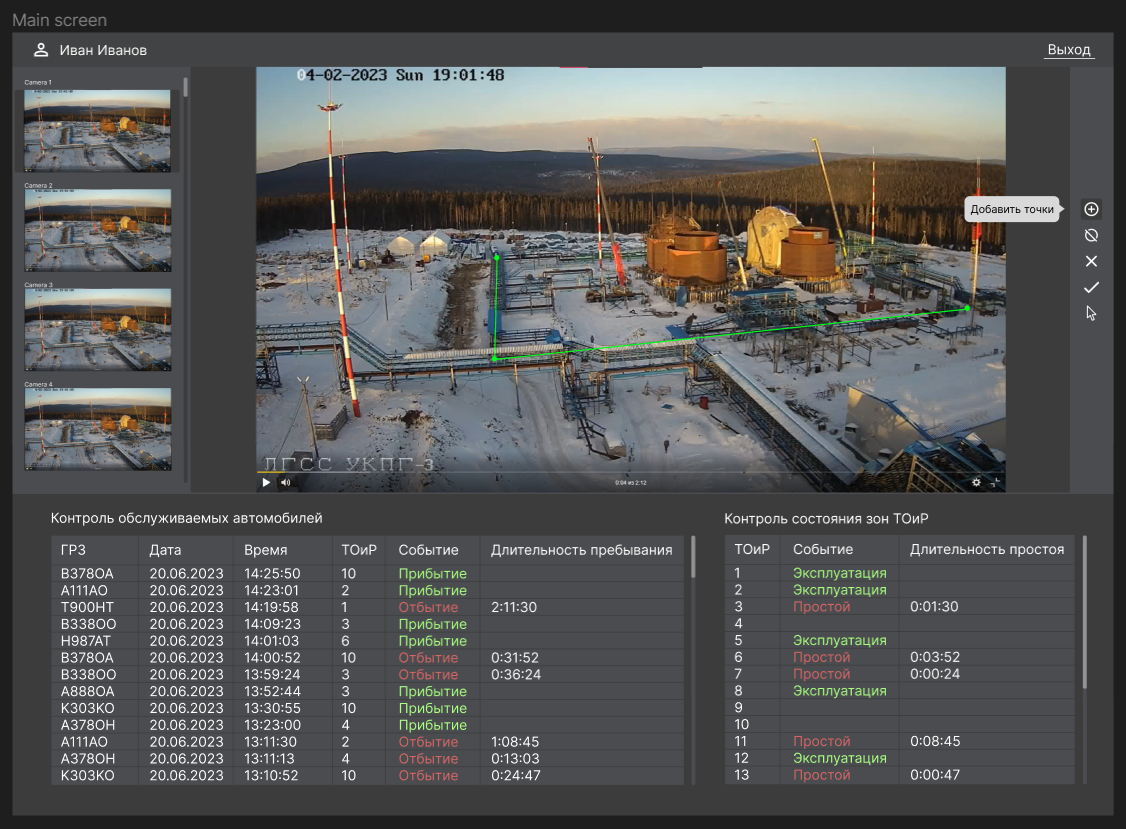 Implementation of finding and tracking of objects in the frame, beginning of determination of the logic of the arrival / departure of the vehicle to the “ТОиР” zones.
