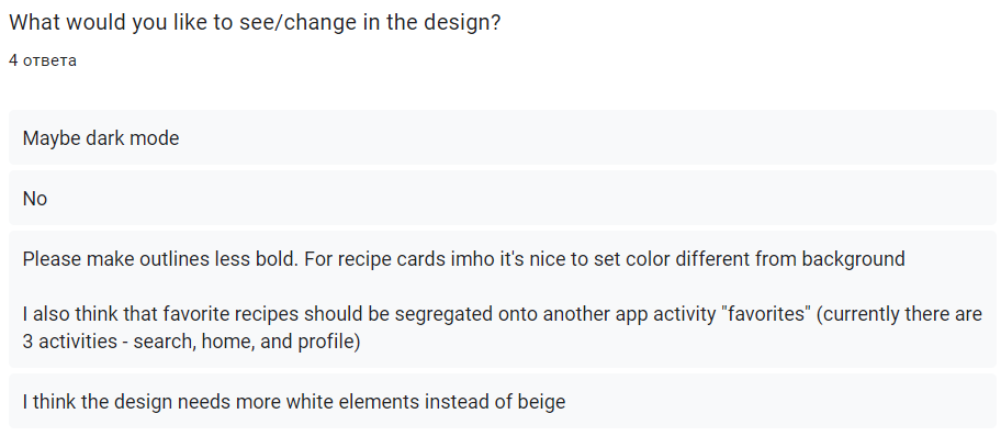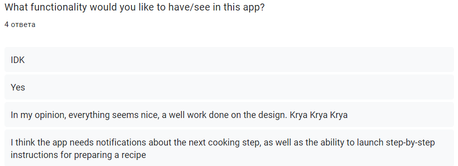Our team members have sent a questionnaire to our course chat and asked several friends in real life to check the design and performance of the current state of the application