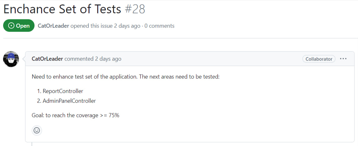 Although we goal to enhance test set and to reach the coverage >= 75%