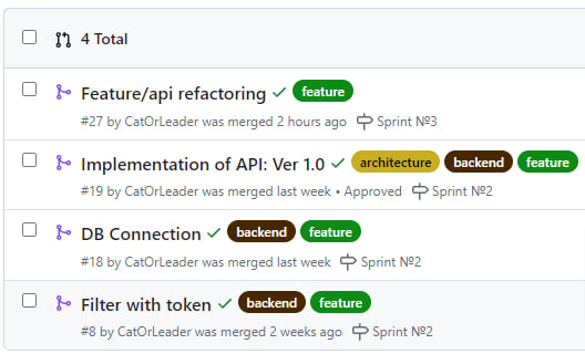To review code, we use pull requests: https://github.com/IU-Capstone-Project-2024/MoniDorm/pulls