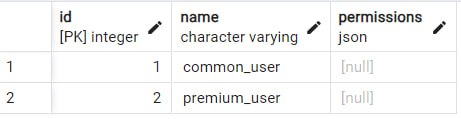 In addition to the main table in the database, which stores all the basic information about the user, there is a table for storing information about the status of user accounts. Users can have premium or common status. Upon registration, each user is assigned the status of a common user.