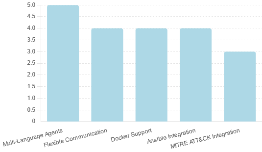 - Users highlighted “Multi-Language Agents,” “Flexible Communication,” “Docker Support,” and “MITRE ATT&CK Integration” as the most valuable features.