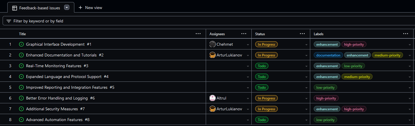 - Feedback suggested the need for a graphical interface, better documentation, real-time monitoring, more language support, and enhanced reporting features.